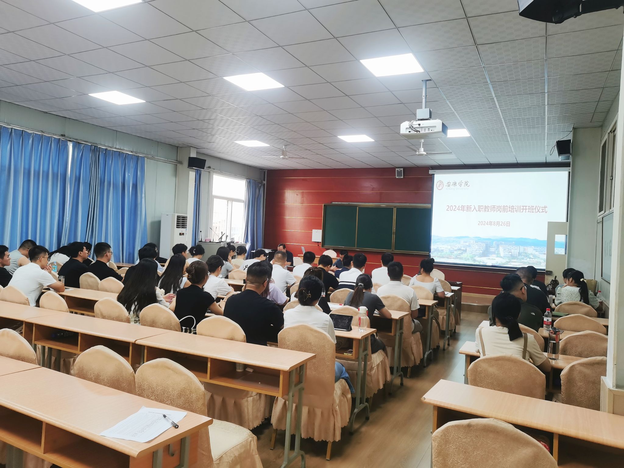 近日,我校2024年新入职教师岗前培训开班仪式在江南校区1018室举行,党委副书记余谦,教育教学质量评估中心副主任付争方及45位新入职教师参加了开班仪式。会议由付争方主持。