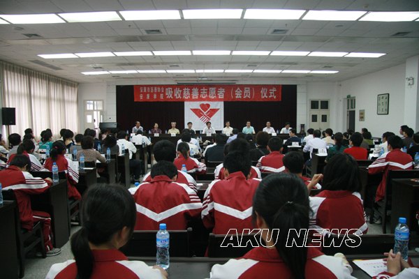 为了大力弘扬中华民族乐善好施、扶危济困的传统美德,热心参与慈善事业,向社会弱势群体献出更多的阳光和关爱,5月9日下午,由安康市慈善协会主办,化学化工系党总支承办的“安康市慈善协会、安康学院吸收新会员(志愿者)仪式”在我院图书馆六楼报告厅隆重举行。安康市慈善协会会长段吾勇,安康市委宣传部副部长、市文联主席马昌琪,副会长张培祥、王友根,秘书长董长英,汉滨区新城办事处主任李家强,我院党委副书记胡鸿晓,副院长向纪明,化学化工系党总支书记张立虎参加了仪式,仪式由慈善协会会长段吾勇主持。